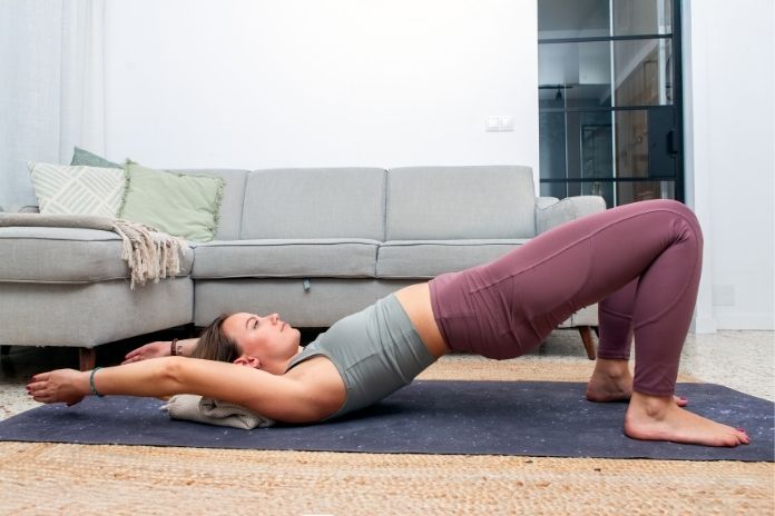 A toned lower body begins with strong glutes. Glute bridges work on and engage the muscles in your hips and posterior chain. This helps sculpt and lift your backside.