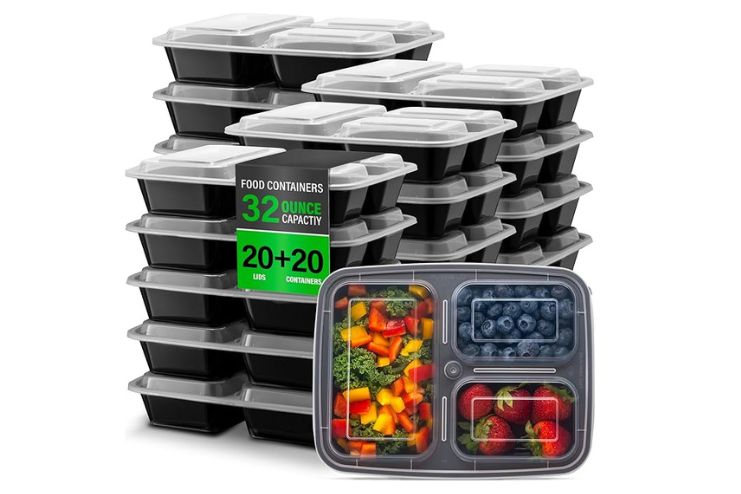 8. EZ Prepa 32oz 3-Compartment Meal Prep Containers
