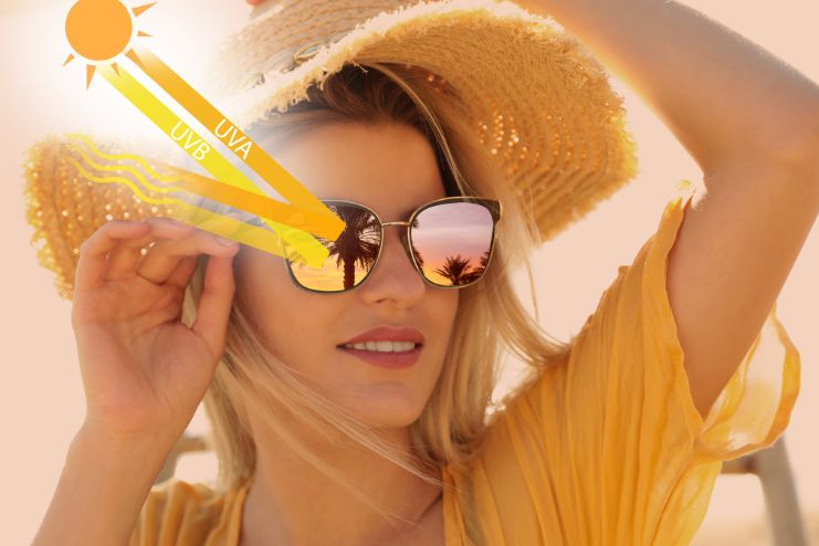 UV-protective sunglasses and eyeglasses feature special coatings applied during manufacturing to shield your eyes and the delicate surrounding skin from harmful ultraviolet rays.