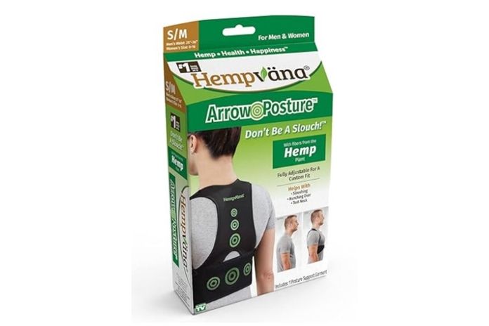 We recommend Hempvana Arrow Posture Corrector – Lightweight Daily Support is a fully adjustable back brace designed to align the shoulders and spine, helping reduce slouching, hunching, and “text neck.” Made with hemp-infused fabric, it offers lightweight, comfortable support for daily posture improvement.