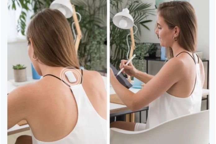 How it works: A small wearable gadget you attach to your upper back (with adhesive strips or a necklace). It senses slouching and gives a gentle vibration to remind you to sit or stand straighter. It syncs with an app to track posture habits and progress.