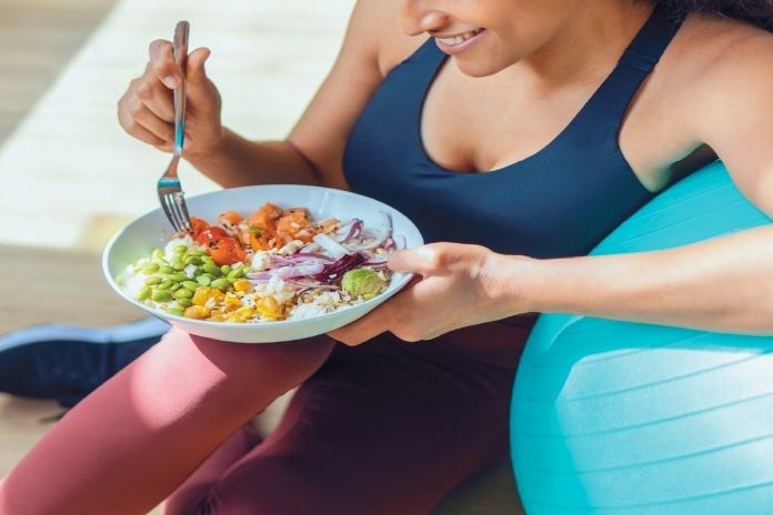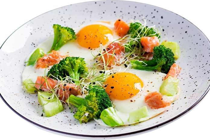 Dinner: Baked salmon with roasted asparagus and some sweet potato. If you want to drink, try green tea, lemon water, or unsweetened matcha.