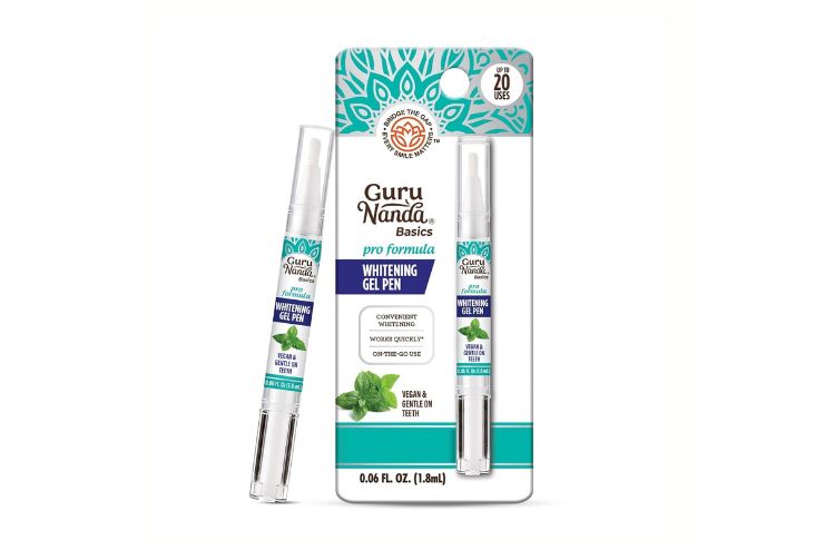 The GuruNanda Teeth Whitening Pen is a gentle brush-tip application and cruelty-free, vegan formula that includes hydrogen peroxide as the active ingredient and menthol. The pen removes surface stains from tea, wine, coffee, and other discolorations. As you continue to use it, it gradually brightens and imparts a pleasant mint flavor.