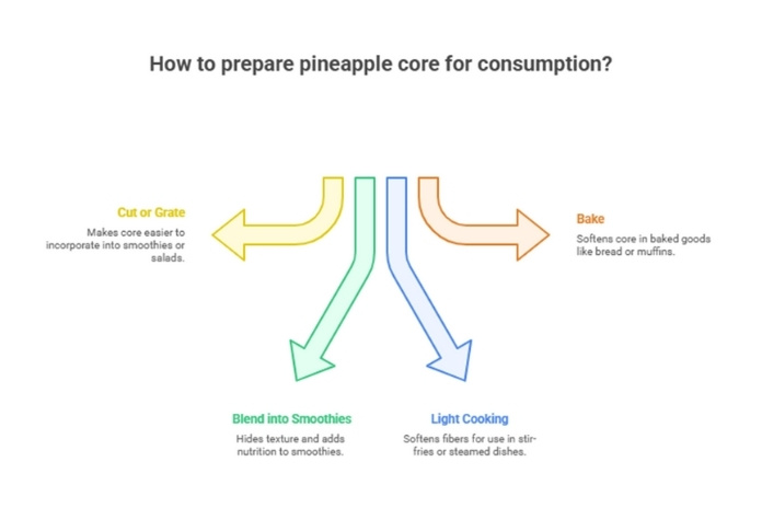 - Chop and bake: Some people include core chunks in baked dishes (pineapple bread, muffins) where the fibrous part softens during baking.