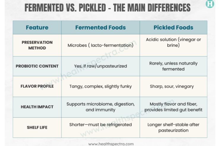 There are shelves full of “probiotic-rich” food at the grocery store, and fermented condiments are hawked by health influencers as necessary staples. But even with their popularity, here’s one thing: folks tend to mix up fermented foods with pickled foods. They’re not the same, and it matters if you’re seeking to heal or support your gut.