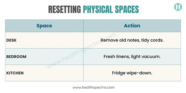 Mental clarity is often tied to your physical surroundings. That’s why many wellness-focused individuals build in a 15–30 minute home reset as part of their Sunday wind-down. You don’t need to deep clean your entire house, just refresh the key areas that support your productivity and calm.