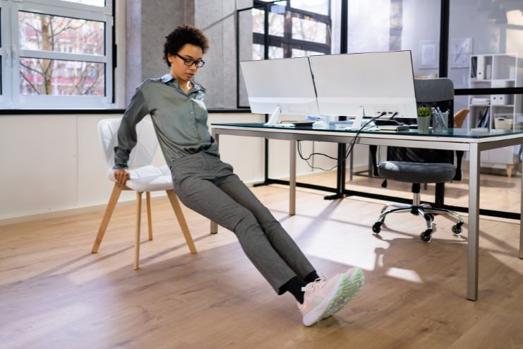 Triceps dips using a chair focus on the triceps, one of the most important areas for arm definition. By resting on your body weight, it puts stress on the back of the arms to work and become firm.
