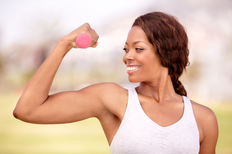 When you train with bodyweight exercises, resistance bands, or even 1–5 lb dumbbells and do 12–20 reps, 2–4 sets at a controlled speed (3 seconds up, 3 seconds down), you’re still engaging and developing the slow-twitch muscle fibers that help you tone your arms.