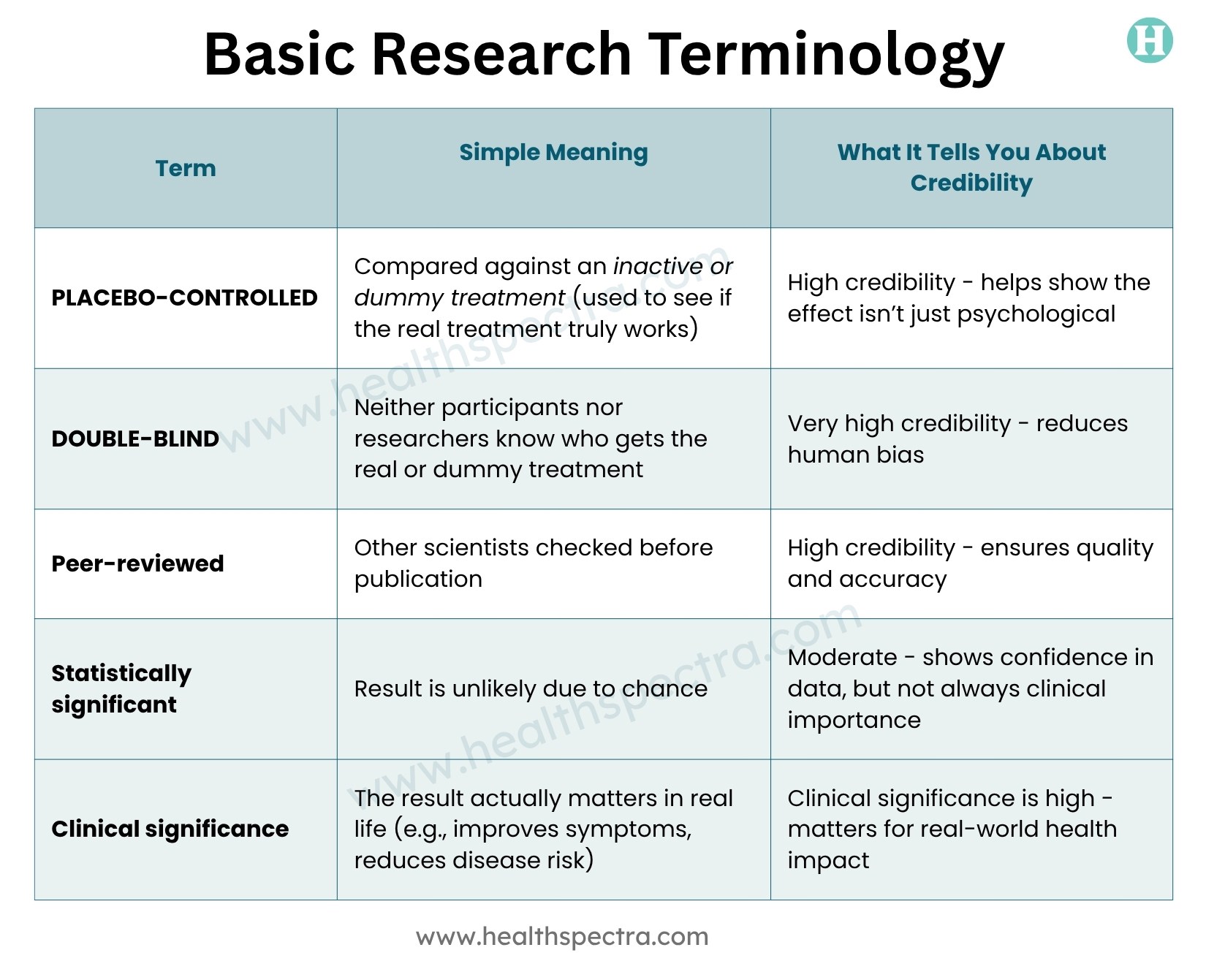 You don’t need to learn full biostatistics, but knowing a few terms helps a lot. Knowing these words helps you spot pseudoscience that throws around fancy terms without meaning.