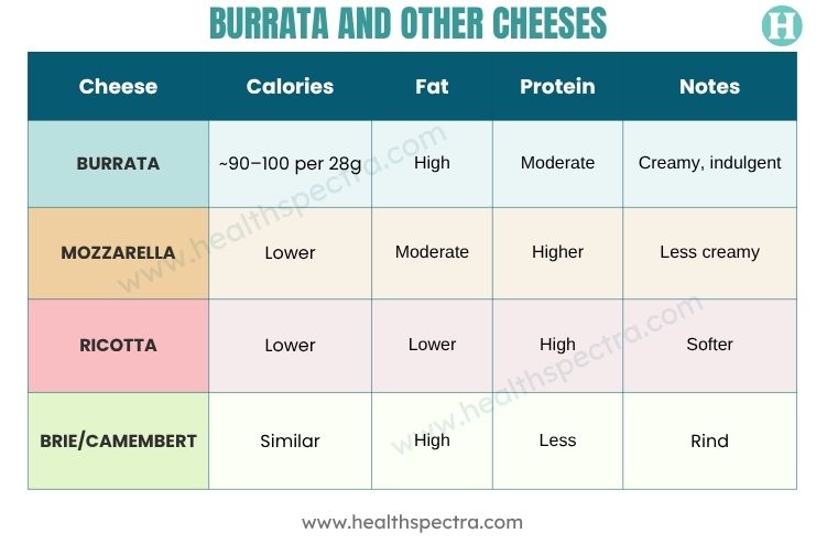 When it comes to choosing cheese, taste often takes the spotlight, but health factors like calories, fat, and protein matter too. Here’s how burrata compares with other popular soft cheeses: