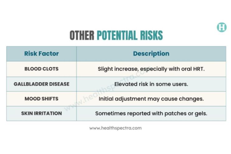 • Stroke and Blood Clots:There is a small elevated risk, particularly with oral forms of HRT.