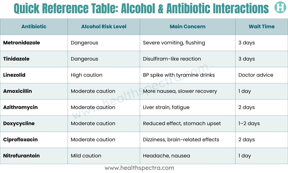 Quick Reference Table: Alcohol and Antibiotic Interactions