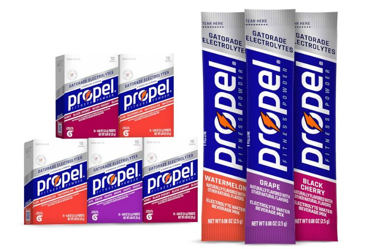 Propel is available in flavors such as Berry, Kiwi-Strawberry, Lemon, Grape, Peach-Mango, and others, in both bottle and powder packet forms