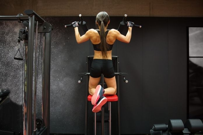 For pull-ups, grab the bar with palms facing away and pull up until your chin passes the bar. If that’s not possible, have a band or machine assist you. Lat pulldowns are an excellent alternative, just make sure to pull to the chest and not behind the neck, and to control the eccentric.