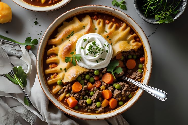 The vegetables and lentils used in the recipe give a decent amount of fiber, plant protein, and vitamins. Olive oil provides healthy fats, while the mashed potato crust offers soothing carbohydrates.