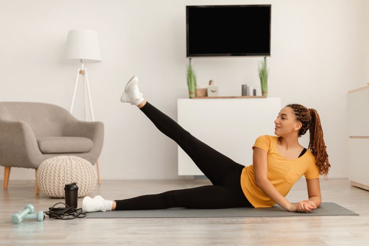 This comfortable alternative works your hip muscles and improves overall leg strength without putting pressure on your knees. The side-lying position eliminates the knee stress that comes with traditional squats.