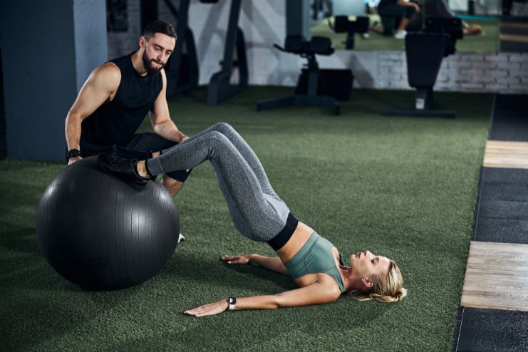 This fun exercise targets your glutes and hamstrings while allowing your legs to rest comfortably on the stability ball. It’s an excellent way to continue strengthening your lower body without knee stress.