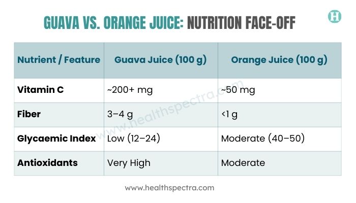 This comparison alone explains why many nutritionists now consider guava one of the best juices for immunity, especially for people who want blood sugar stability along with immune support.