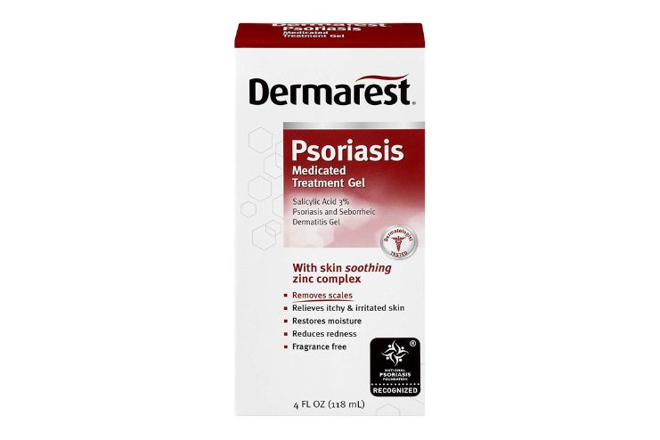 Dermarest Psoriasis Medicated Treatment Gel, which contains 3% salicylic acid, is designed to address the symptoms of psoriasis, including scaling and itching. In addition to treating psoriatic skin, the fragrance-free product helps reduce the redness frequently associated with psoriasis.