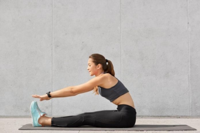 • Hamstring stretch: Straighten one leg, lean gently forward.